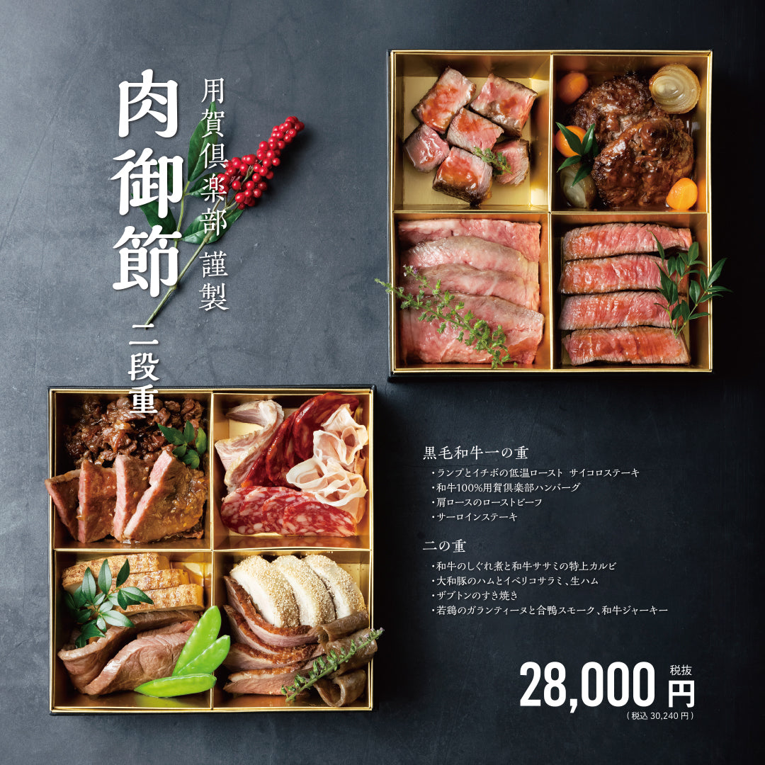 用賀倶楽部が贈る肉尽くしの豪華2段御節。